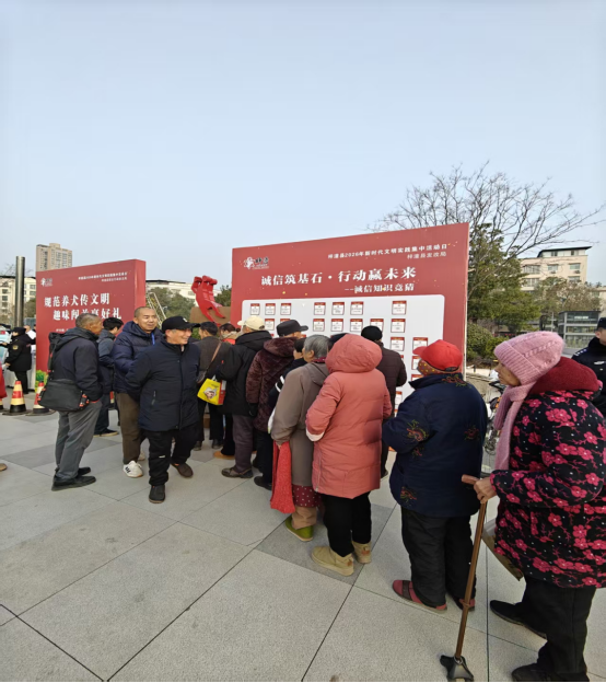活動(dòng)聚焦“普及誠信知識(shí)、強(qiáng)化誠信意識(shí)、踐行誠信理念”目標(biāo),創(chuàng)新采用線下“隨機(jī)抽題+現(xiàn)場作答+即時(shí)講解”的形式增強(qiáng)體驗(yàn)感。精心設(shè)置單選題、情景判斷題等題型,內(nèi)容涵蓋誠信相關(guān)法律法規(guī)、社會(huì)信用體系建設(shè)政策、經(jīng)典誠信故事、日常誠信行為規(guī)范等多個(gè)方面?,F(xiàn)場群眾通過抽號答題、互動(dòng)競猜的方式,在輕松氛圍中學(xué)習(xí)誠信知識(shí)。工作人員對題目中涉及的法律法規(guī)和信用知識(shí)進(jìn)行現(xiàn)場解讀,實(shí)現(xiàn)知識(shí)普及與實(shí)踐指導(dǎo)有機(jī)結(jié)合?;顒?dòng)根據(jù)題目難易程度,對回答正確的老百姓發(fā)放抽紙、洗衣液、香皂等日常生活用品500余份。活動(dòng)現(xiàn)場還配套發(fā)放《誠信建設(shè)宣傳手冊》等資料500余份,幫助群眾進(jìn)一步理解“守信激勵(lì)、失信懲戒”的社會(huì)信用規(guī)則。